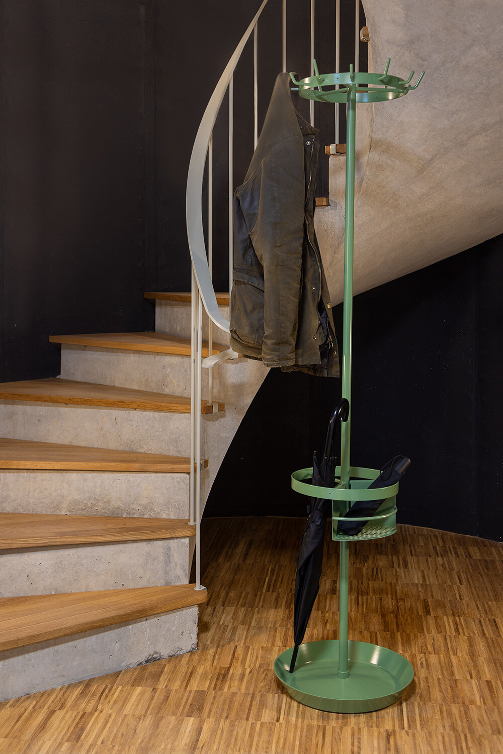 Die Garderobenständer GSZ und GSZ S, von Stefan Zwicky entworfen, bestechen durch ihr zurückhaltendes Design, das sich den Gegebenheiten eines Raumes perfekt unterordnet. Nicht nur in Büros, Schulen und in Restaurants, auch im Eigenheim macht dieses funktionelle und ästhetische Möbelstück eine ausgezeichnete Figur.