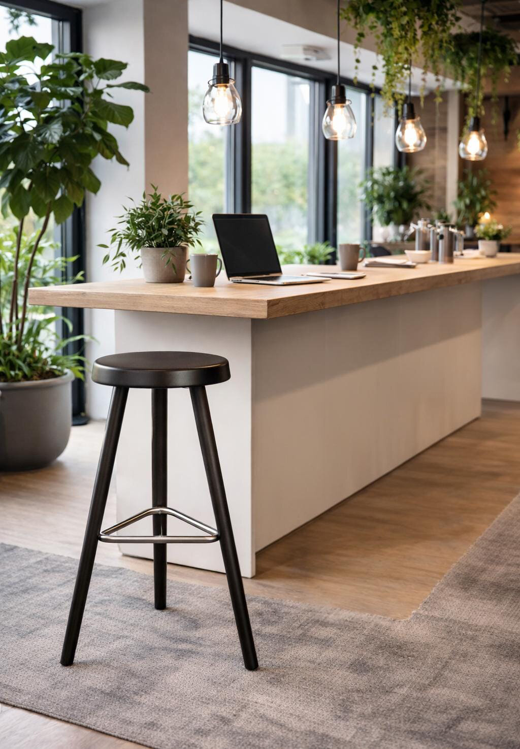 Ein Barhocker, vollständig aus Massivholz gefertigt, entwickelt und gestaltet in Zusammenarbeit mit Stephan Wenger. Mit minimalistischem Materialeinsatz entstand ein eleganter, funktionaler und hochwertiger Massivholzbarhocker, passenden zu bestehenden Produkten der Kollektion. Dank seines dreibeinigen Gestells steht er auch auf unebenen Böden stets stabil. Der wahlweise runde oder dreieckige Fussring aus gebürstetem Edelstahl dient nicht nur als komfortable Fussablage, sondern trägt wesentlich zur stabilen und langlebigen Konstruktion bei.