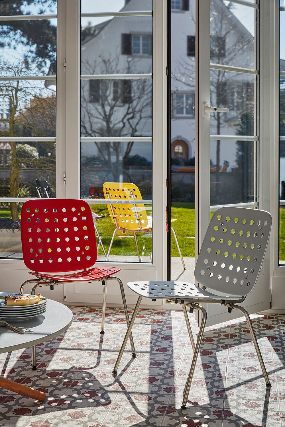 Der Aluminiumstuhl Coray besticht durch Leichtigkeit, Robustheit und formale Klarheit. Der im Jahr 1953 von Hans Coray entworfene Designklassiker ist ein vielseitiger, praktischer Allrounder – gleichermassen geeignet für die Bestuhlung öffentlicher Räume, zum Beispiel von Linienschiffen oder Restaurant-Terrassen, wie für den heimischen Garten.