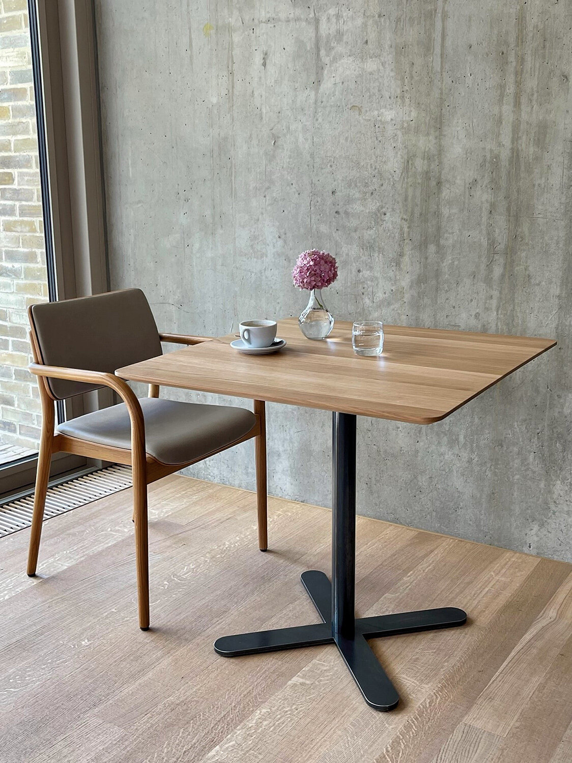 Der zeitlose Tisch ist in quadratischer, runder und rechteckiger Ausführung erhältlich. Die hochwertige Ausführung besteht aus Massivholzplatten in Eiche und Buche oder aus belegten MDF-Holzwerkstoffplatten. Mittelfuss und Tischbeine sind aus Rohstahl oder werden pulverbeschichtet. Produziert wird auf Bestellung und passend zum Objekt. Schlichte Formen und eine präzise Verarbeitung verbinden sich zu einem Modell von zeitloser Schlichtheit und hohem Gebrauchswert und machen «Minimal» so perfekt für Hotels, Restaurants, den Health-Care Bereich oder auch für Privatwohnungen. Entworfen von Stephan Wenger 2016, übernimmt Seledue seit 2024 Produktion und Vertrieb des Tischprogramms.
